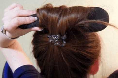 3、准备一个海绵盘发器,然后把发尾穿过在海绵中去。