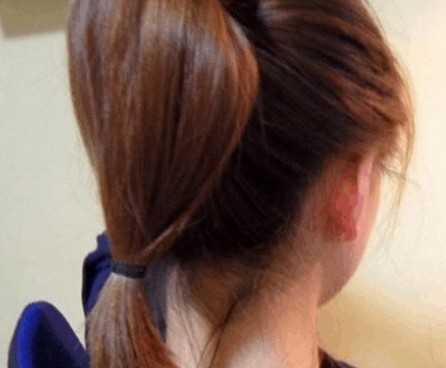 4、接着把马尾卷曲起来,一直卷到底为止。