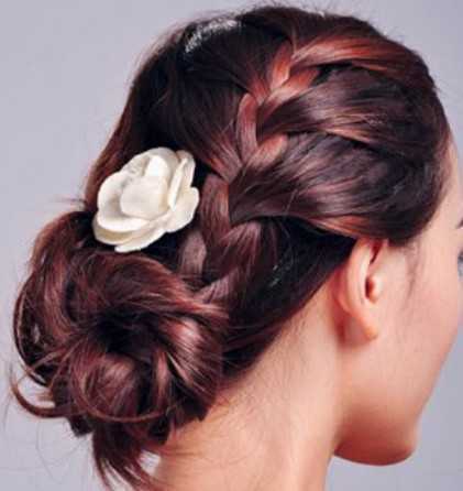 这么优雅好看的花苞头盘发,别致的辫子和随性的花苞头组合,增添的白色发饰,优雅好看,这么不错的发型你怎能错过?