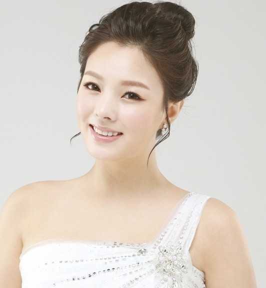 洋溢着幸福笑容的新娘子,来个简单的韩系丸子头盘发发型,无刘海设计中垂落几缕卷发丝,又是倍增气质优雅的魅力。