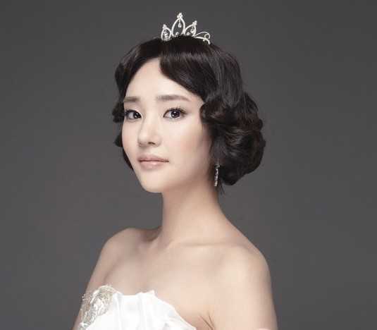 蛋卷发的新娘盘发发型,立马变身上世纪的曼妙公主感觉,搭配闪钻皇冠发饰,淡雅的妆容,最温婉最高贵的新娘子就是你啦!