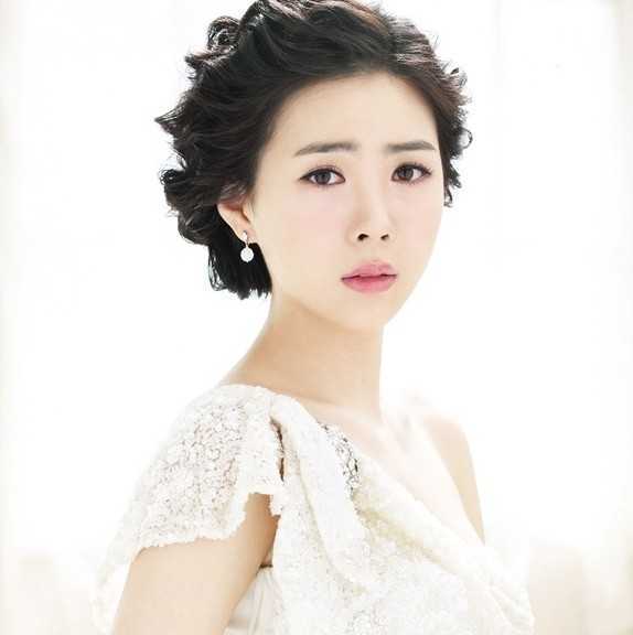 发髻与婚纱的完美搭配,如果你是个个性开朗、乐观奔放的新娘,那么这款俏丽的卷曲盘发对你就再合适不过了,还很显气质优雅哦!