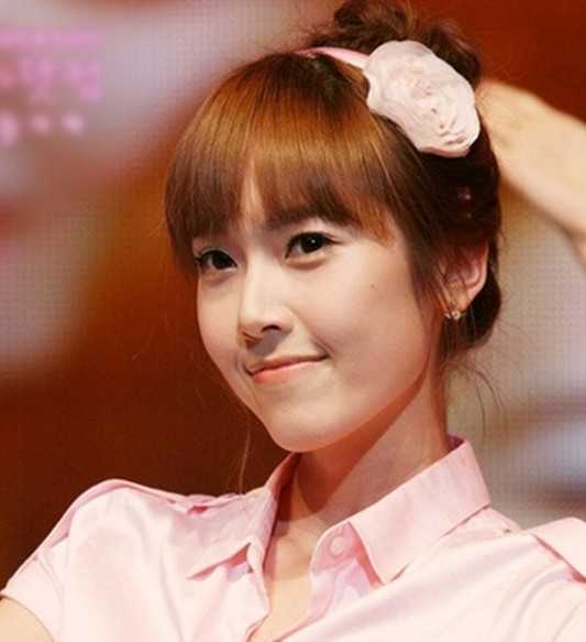甜美娇俏的韩系花苞头盘发,高扎发髻很显瘦脸效果,刘海发型搭配棕色染发更显气质,花朵发饰装点后,又是甜美的公主范儿。