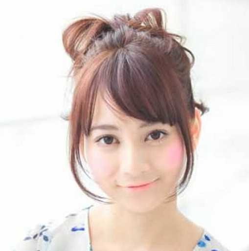 2014绝对是可爱清丽的女生盘发发型,两颊两边内扣的发尾,让人看起来非常卡哇伊,凌乱的盘发造型也简单易打理。