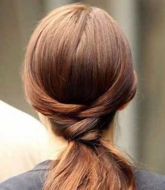 将一头长发编成发辫后,扭转后盘起,简单、利落,有点复古的味道,高贵典雅,夏日很适合这样的发型。