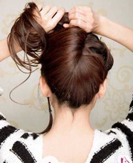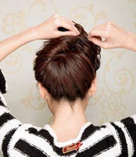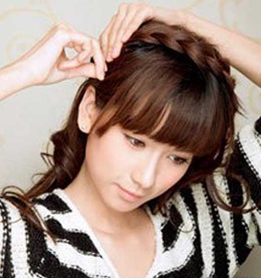 2、然后把编好后的发辫,绕过头顶使用发卡在发顶上。