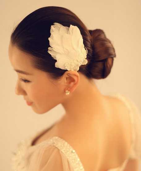 犹如优雅般的公主魅力,整齐利落的低发髻盘发发型,显女生落落大方的气质美,侧别上花朵发饰,柔情的侧面展示,绝对纯美和迷人。