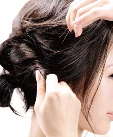 要去参加宴会的MM这样一款盘发最适合不过了。快点动手学学。