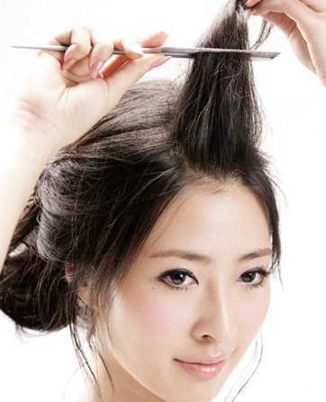 step5:取出前面的刘海倒梳,侧分下来就可以。