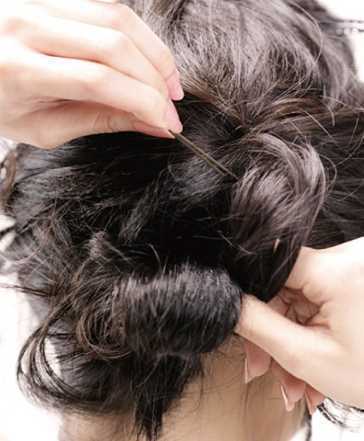 好了,这款蓬松的温婉盘发就完成了,慵懒随性,喜欢吗?