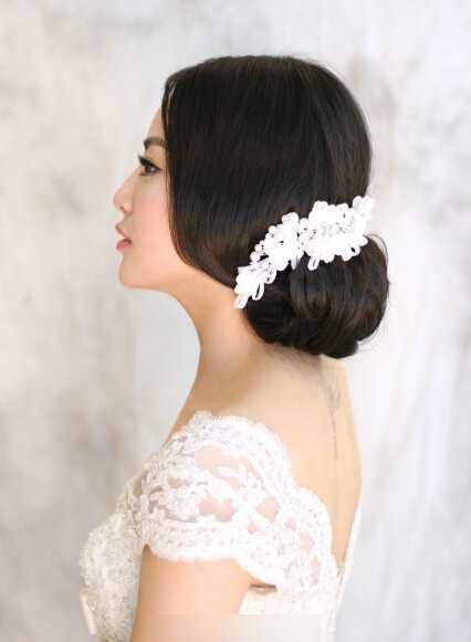 韩系风的新娘盘发发型,低低盘起的花苞头发髻,优雅不失温婉女人味,贴服脸上往后扎的刘海头发,更是妩媚和迷人呀!