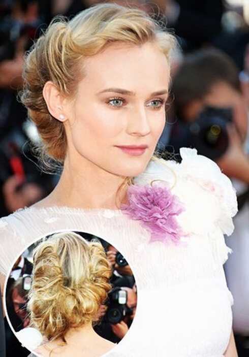 发型点评:Kruger这款精致的圆筒式蓬松大卷盘发不只是红毯的首选,任何重要的场合都是必备的发型!前面是经典的美丽,后面则是凌乱而时髦的美。十分王室风范。