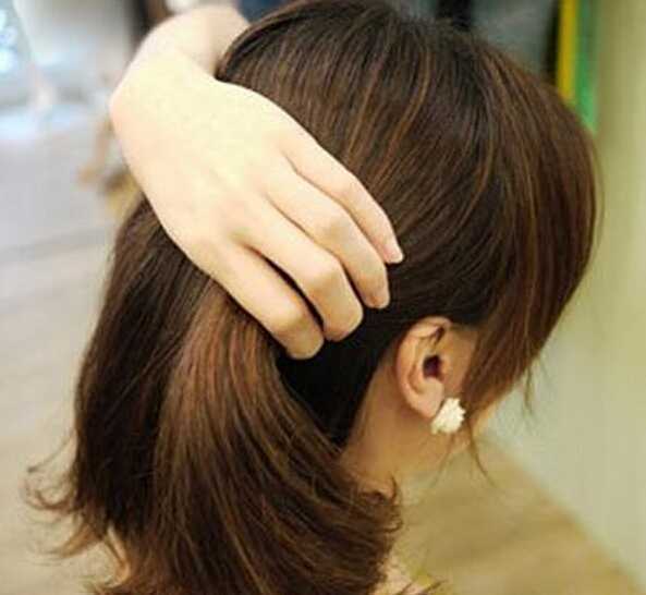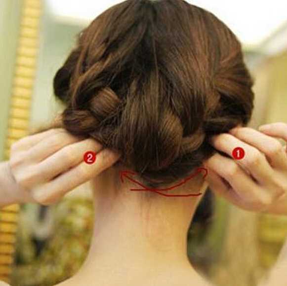 步骤九:把2号的发尾拉到1号的发根处交叉,小夹子固定好。