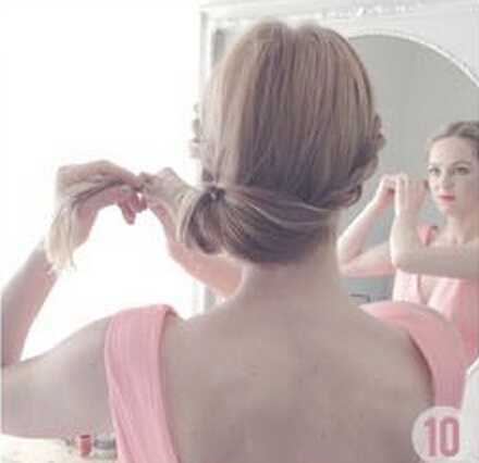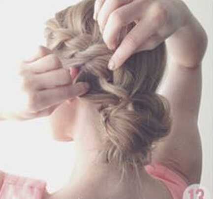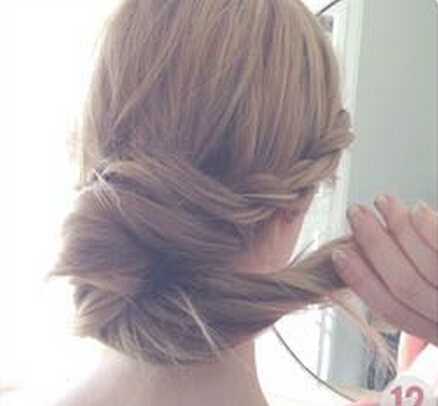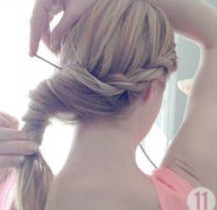 步骤11、剩下的头发往右侧扭转,以打造一个花苞效果,最后用发夹固定好;