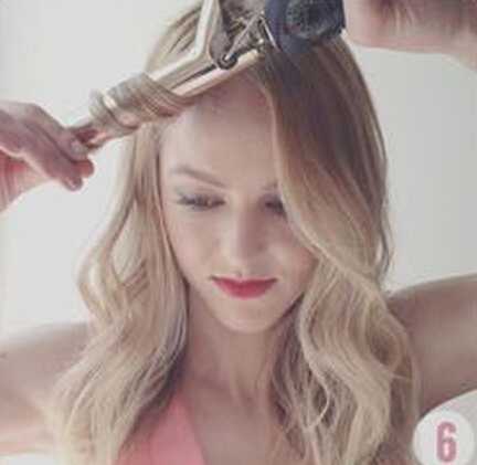步骤5、刘海中分,然后用卷发棒将刘海烫卷;