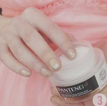 步骤2、用手指蘸取一些发膜涂在头发上;