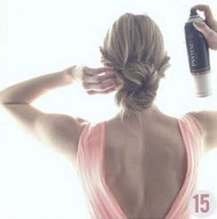 步骤14、最后在头发上喷一些定型喷雾,这样造型才不易松散哦。