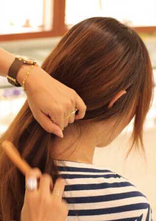 步骤一:先将头发梳理整齐柔顺,自然散落在肩后。