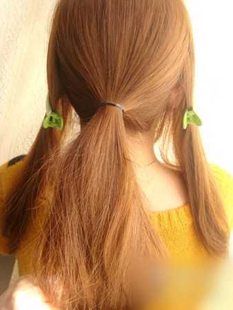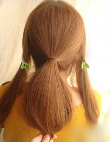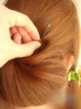 步骤五:将马尾向内弯曲,在原先用发圈扎好地方再用发夹固定。