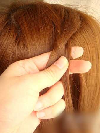 步骤八:将之前分好在右侧的头发散开,取出一束头发编成麻花辫。