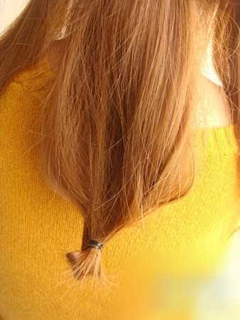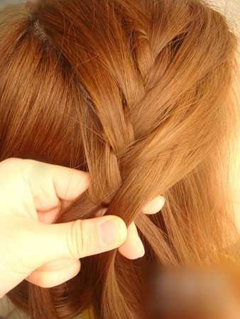 步骤九:编发时,每编一节就要从手边取出一股头发编入进去。