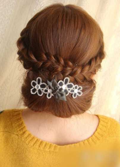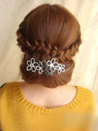 步骤十四:最后配上一个精美的发饰,这款名媛风盘发就大功告成了。