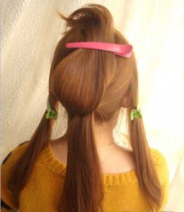 步骤三:将剩余的头发放下来,盖住打毛的头发,并用手抓紧马尾。