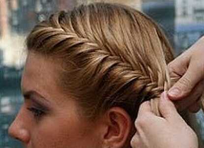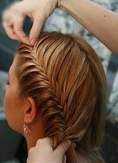 step5、稍微调整一下鱼骨辫的松紧程度,把紧实的鱼骨辫拉松;