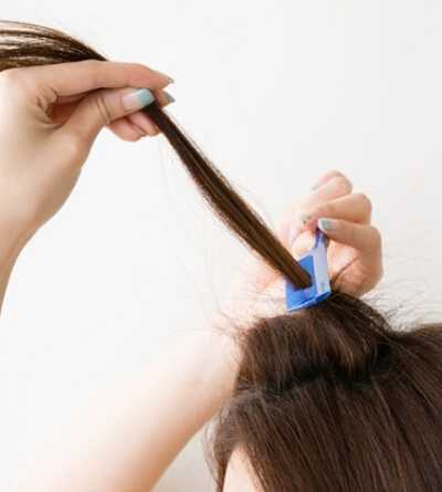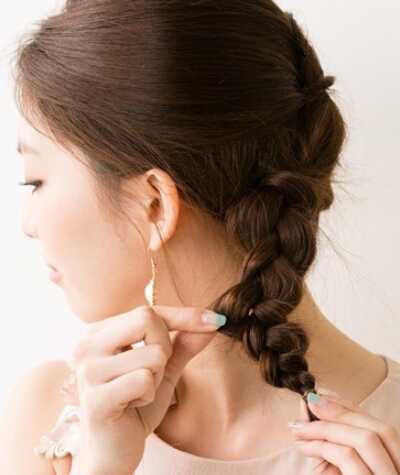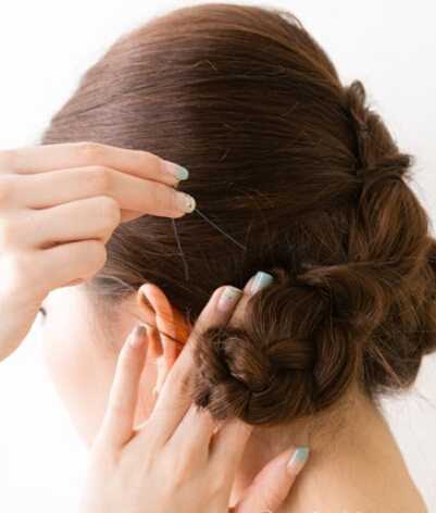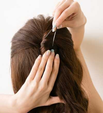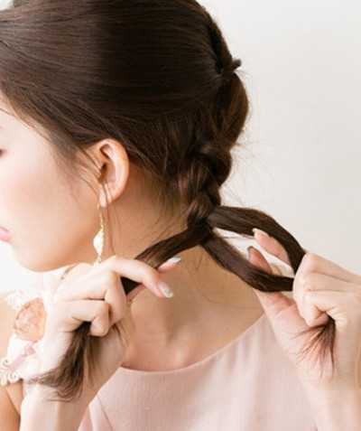 步骤三:将头发扭转成一条发辫,然后用发夹固定在脑后。
