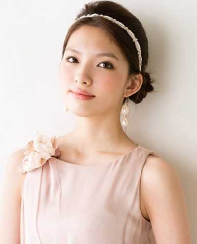 齐肩的中长发盘成一个精致的发髻别在脑后,露出白皙的脖颈,尽显妩媚女人味,搭配一个精美的发箍,更大大提升了女生自身的优雅气质。