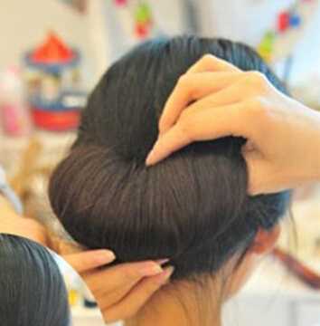 步骤八:将头发塞入凹陷进去的地方,形成一个发包,注意发尾部分要塞得紧实一点,以免有碎发跑出来。