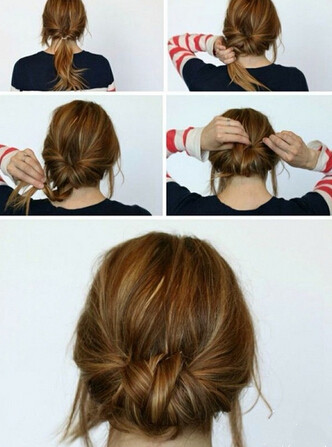 新娘盘发教程05》》》》》将剩余的马尾继续向上卷曲盘成一个低盘发,直至发尾全部卷完为止,用一字夹即可,整个操作的过程如果你需要的是丰盈的发型效果,则在手法上要相对的放松些喔。
