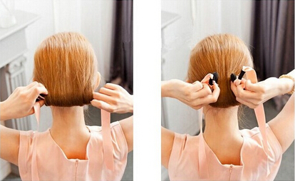 就是如此干净利索的几步盘发器的使用就能打造出一款优雅有大气的发型,简单易学的方法你也赶紧学习一下吧!