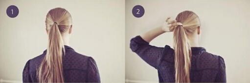 【韩式盘发step01】第一步当然是将秀发梳理通顺之后,把全部的秀发低扎成一个马尾的形状,然后再轻轻地扯松马尾。