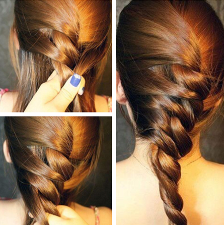 根据上述方法一直将头发编至头发尾部,使用橡皮筋固定好。