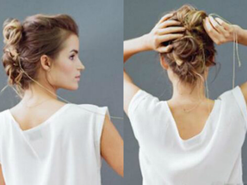盘好头发后,我们可在上面喷上适量的定型喷雾,使盘发持久定型。