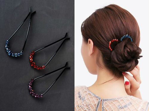 u型盘发器的造型虽然简单,但在款式上有很多选择,今期爱靓Jojot为你推荐的就是这款镶嵌着精致水钻的u型盘发器,它们所散发出的璀璨光芒无疑是你发型的最好装饰品哦!