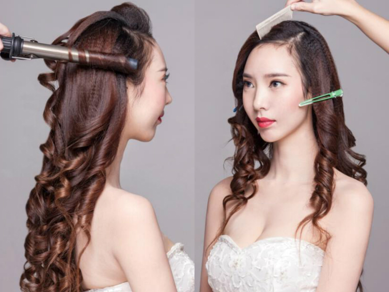 首先准备好一根卷发棒,将后面的头发分次烫卷好,注意烫的时候角度要斜着来,而烫头顶上的头发时则以垂直的方式来烫卷,为了效果持久,在烫发根的时候可以烫久一点。