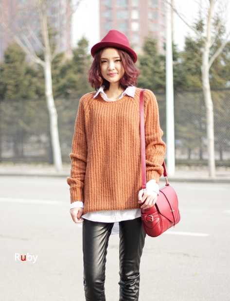 将脸蛋修饰得也很好,枣红色的帽子,和发色很搭哦,看起来感觉很温暖。