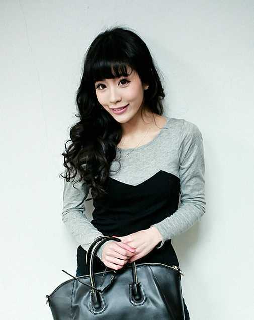 蛋卷型的卷发,增添了俏皮感,碎碎的刘海,乌黑亮丽的发色,展露出自然甜美气息,