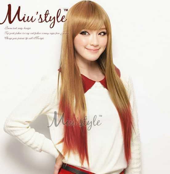 斜刘海的打造甜美感十足,而且还很好的修长了脸型,展现瓜子美人脸,上下双色的渐变头发有一个层次分明的感觉,超有个性,超时尚的!