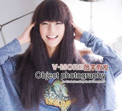 5、碎刘海紫棕色玉米烫离子烫长发发型图