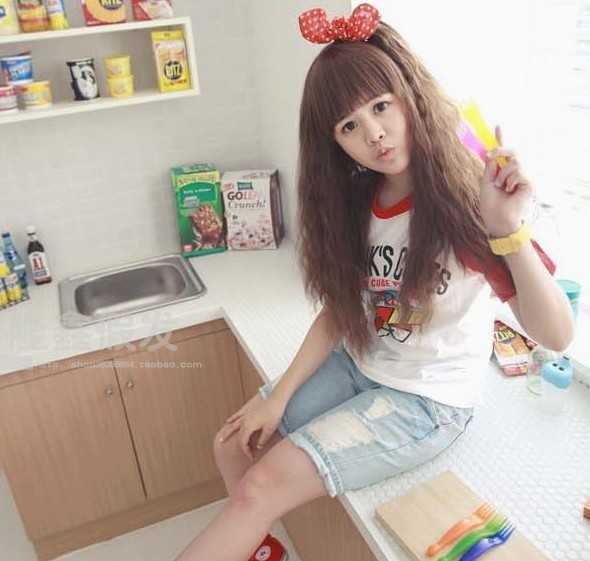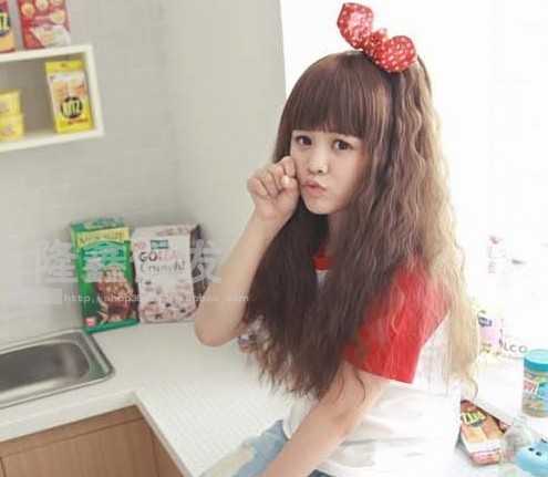 4、齐刘海亚麻色玉米烫长烫发