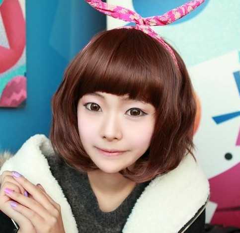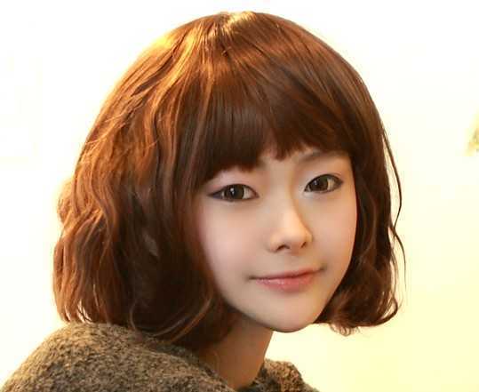 很甜美的一个BOBO头短齐刘海烫发发型,超时尚的,前面的齐刘海打造很好的把MM的脸上修饰的美美的哦!两颊内扣的发尾还带着一些俏皮感哦!