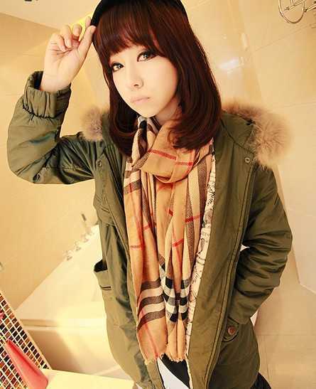 前面碎刘海的打造给人甜美感,韩式的发型设计就是时尚!两颊内翘的发尾展现出些少俏皮感,还有着很好的修饰脸型效果,非常不错的!很棒哦!头上戴着一顶英格伦风格的帽子,感觉十分唯美呢!