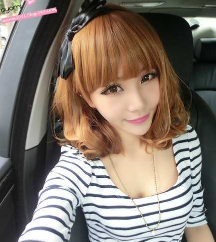 亚麻色的发色是最为时尚的,而且还把MM的脸颊衬托着白皙哟!碎刘海的打造彰显出甜美气息,两颊卷卷发尾有着减龄的效果,棒极咯!