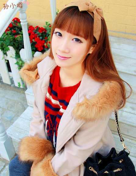 在头上戴着一个蝴蝶发箍,感觉超棒的哟!红棕色的发色和发箍组合着唯美的气息一直在延伸,棒!