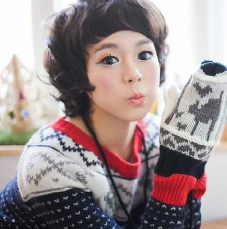 很可爱的一款女生纹理烫发型,稍斜的刘海,修饰了整体脸部的线条效果,顶部上蓬松凌乱的纹理烫,带点卷感,很潮。