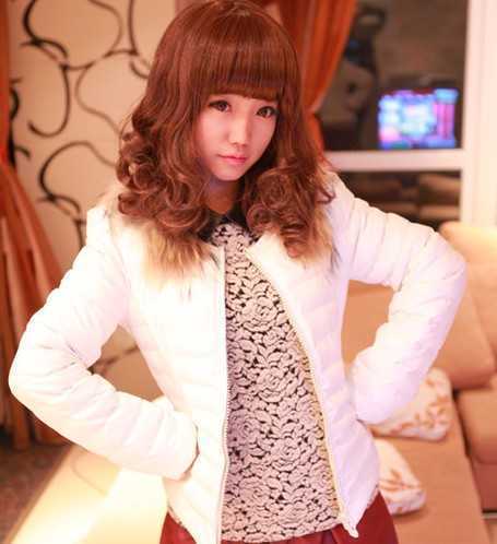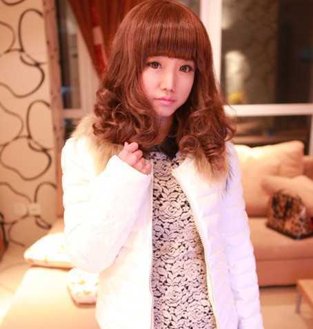 栗色的发色在2013年是最流行的,齐刘海打造,展现出甜美感,两颊蓬松内卷的烫发尾,有着很好的修脸效果,棒哟!