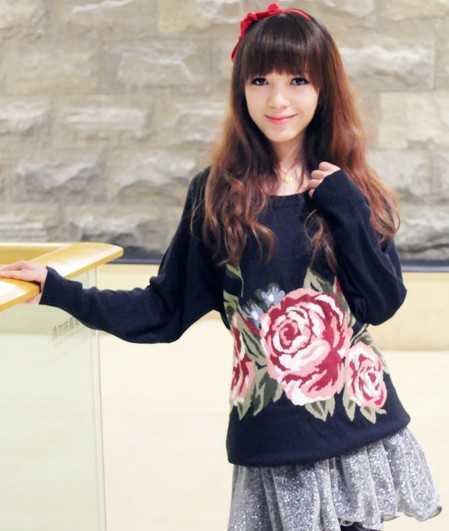 2013最时尚的一款长卷烫发,碎刘海的打造展现出甜美感,红棕色的发色最时尚了,两颊的长卷烫发散落在肩上,清纯感滋生。